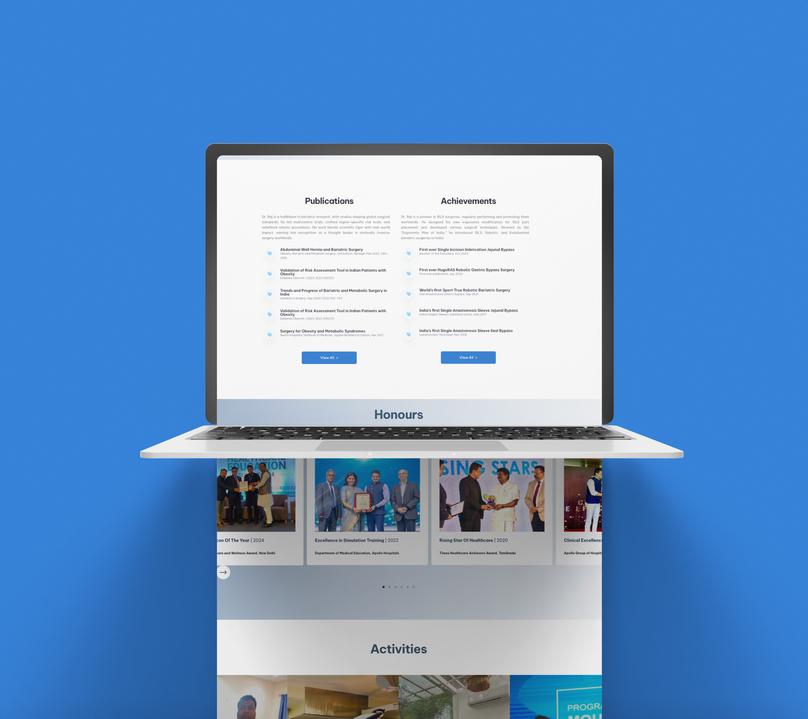 “I didn’t want a boring, standard medical website. The team delivered something that looks futuristic and truly represents the advanced work we do. Seeing my publications and achievements displayed this way is fantastic—it really connects with modern patients.”