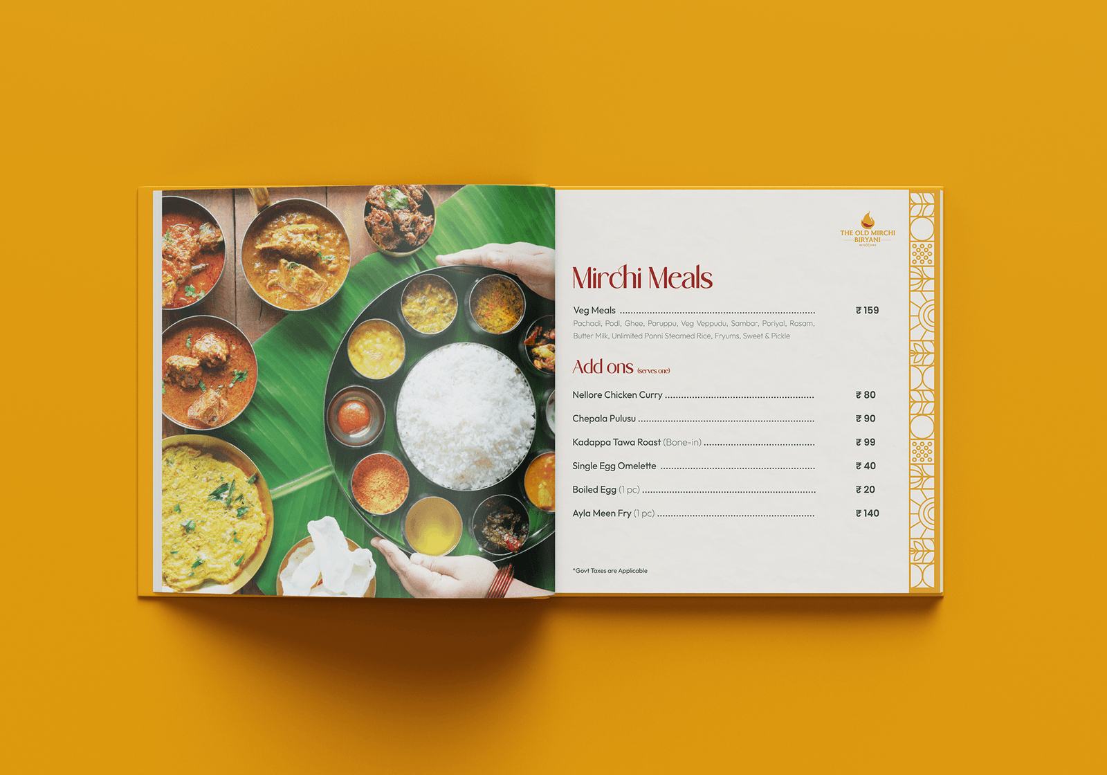 “The new menu design matches the fire in our food! The layout pushes our specialities like the Fire Biryani perfectly. Customers spend less time confused and more time ordering the big-ticket items we want them to try. It looks professional yet authentically traditional.”